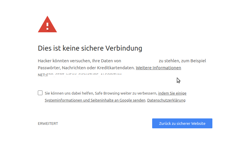 Jedes mal diese nervige Meldung akzeptieren, der Firefox merkt sich das Zertifikat wenigstens. Aber im Chrome muss man alle Tage wieder das Zertifikat akzeptieren. Warum das so ist? Das wird wohl nur Google wissen, die wollen ja sowieso nur das beste für uns *hust*.