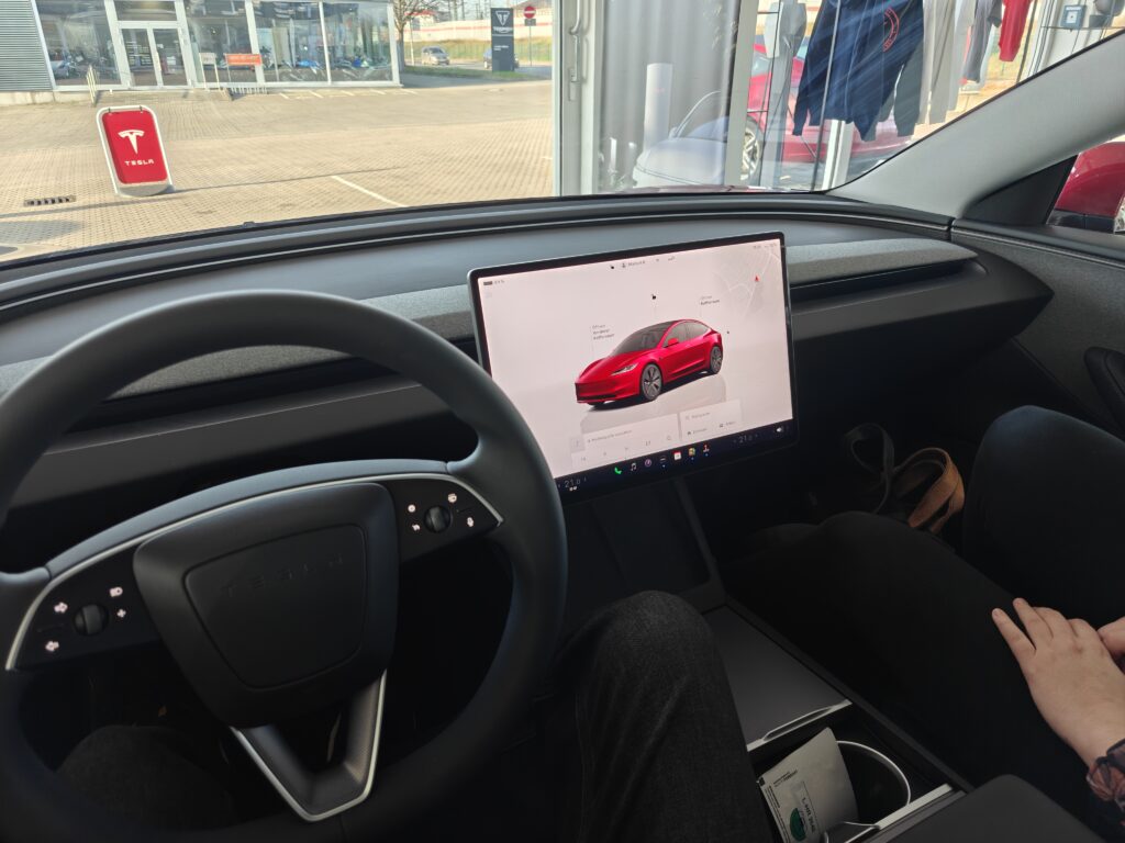 Abholung war dann im Tesla Store Erfurt. Der Verkäufer war Tesla-typisch jung, freundlich und direkt. Kein großes Tamtam – eher: “Hier das Wichtigste, so funktioniert’s, los geht’s.”