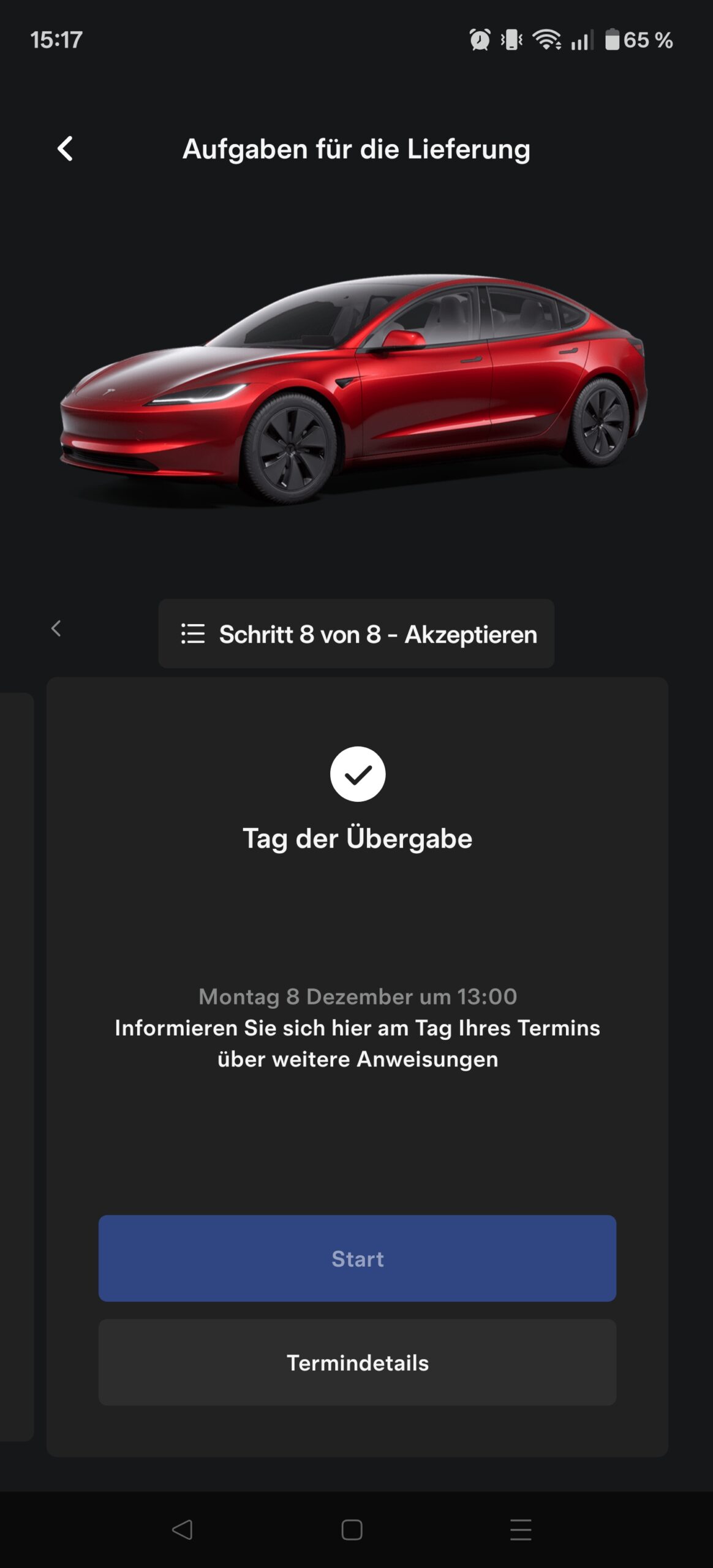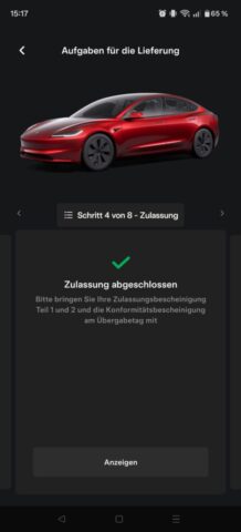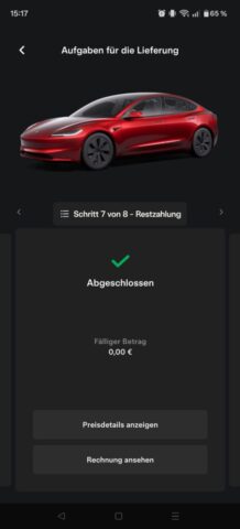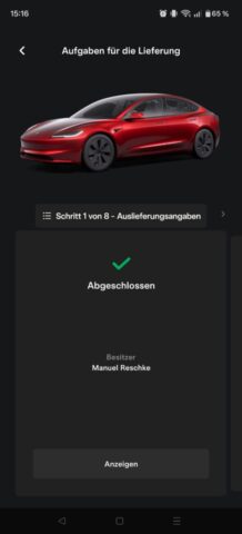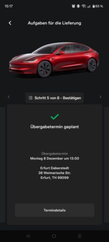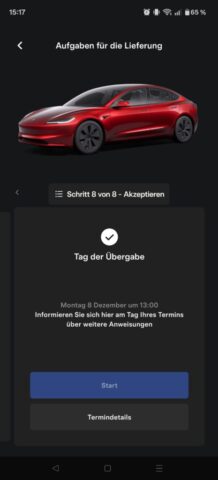 Nach der Bestellung ging’s direkt in der Tesla-App weiter. Dort konntest du jederzeit alles sehen: Status, nächste Schritte, und auch den Abholtermin. Das fand ich richtig angenehm, weil man nicht dieses Gefühl hat, irgendwo “in der Luft” zu hängen.